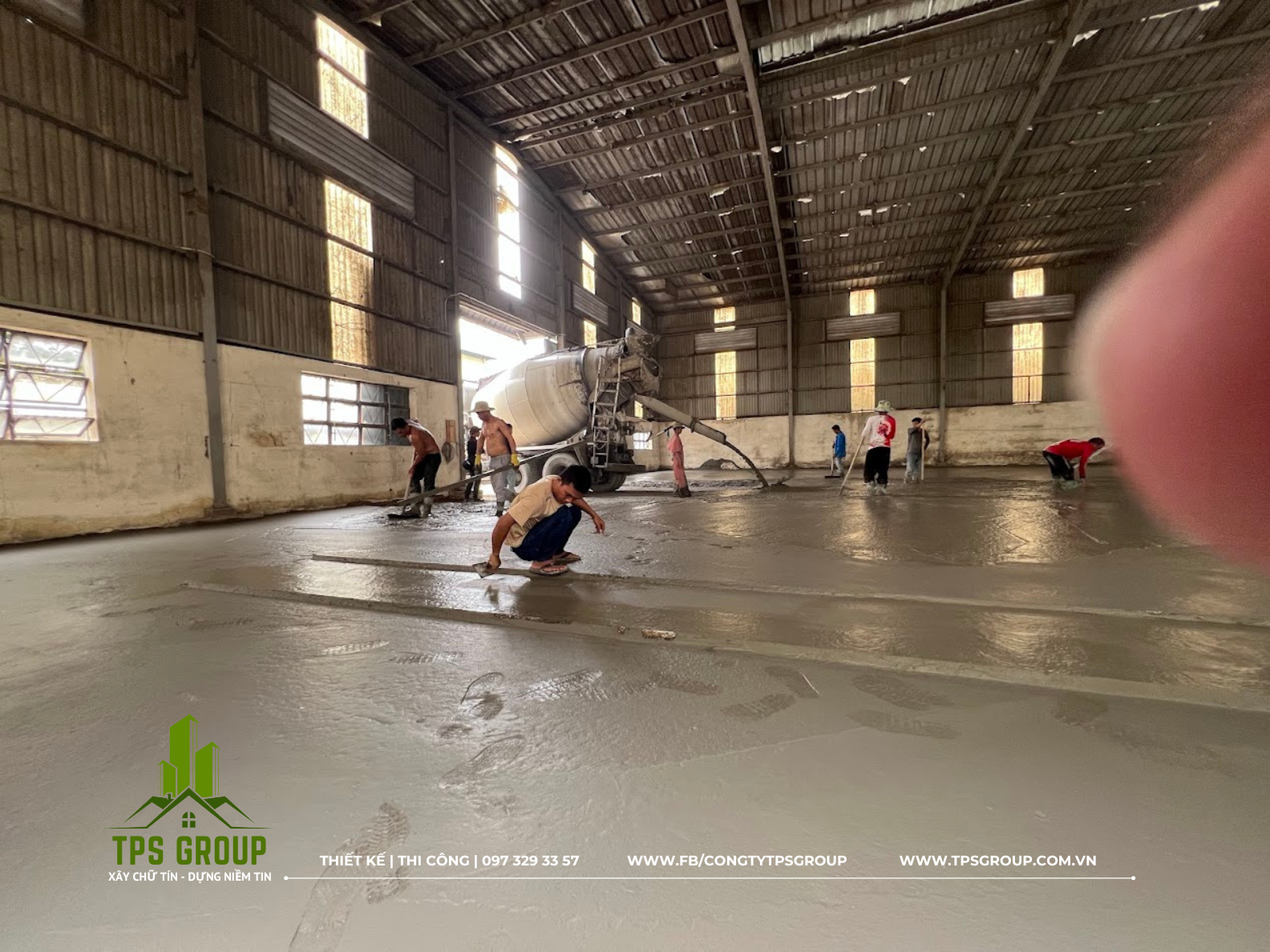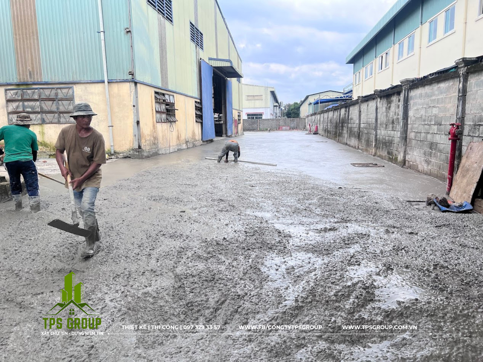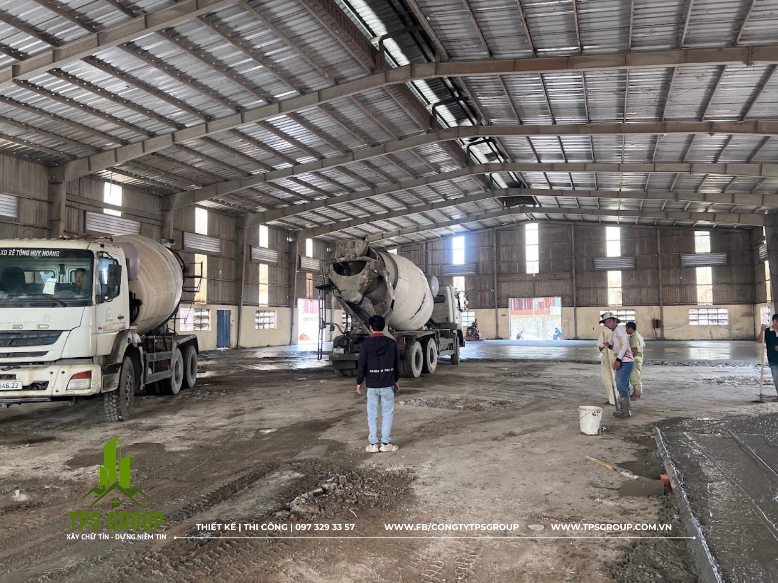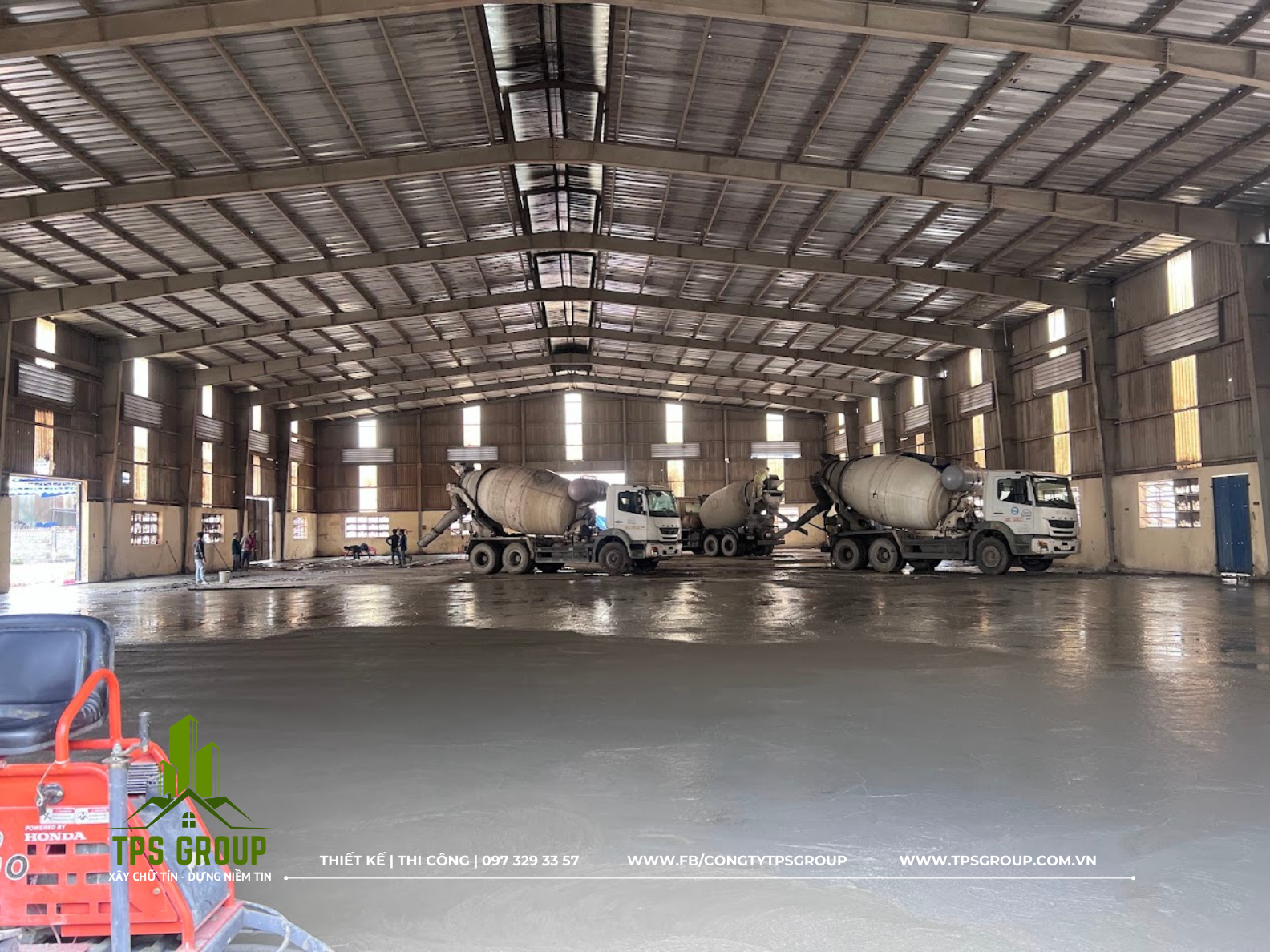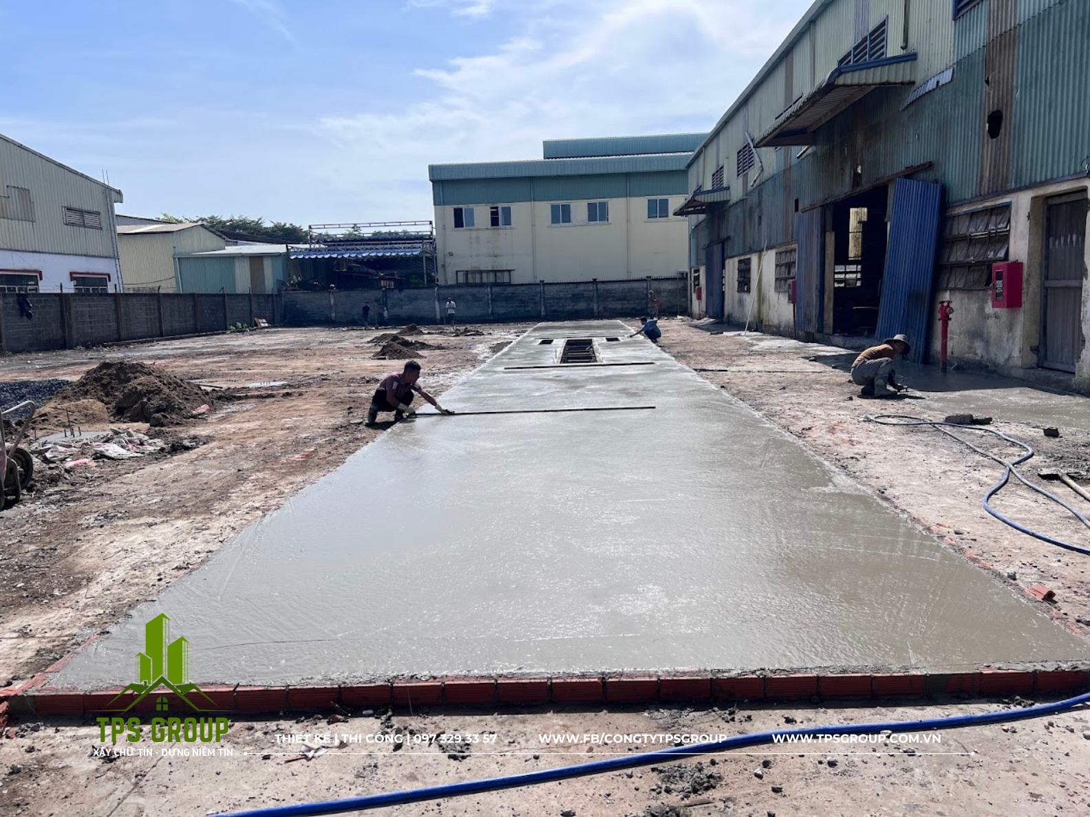 - Đổ mới nền bê tông sàn: sử dụng bê tông mác cao, đảm bảo độ phẳng và khả năng chịu tải cho xe cơ giới và máy móc nặng.