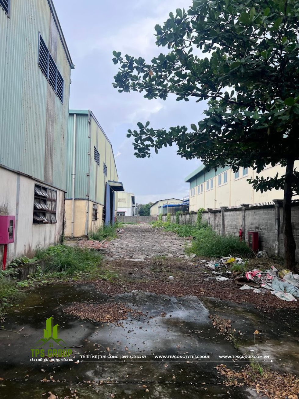 - Hạng mục: Cải tạo tổng thể nhà xưởng – đổ bê tông sàn, chỉnh sửa kết cấu khung thép, cải thiện hệ thống thoát nước và nền móng.