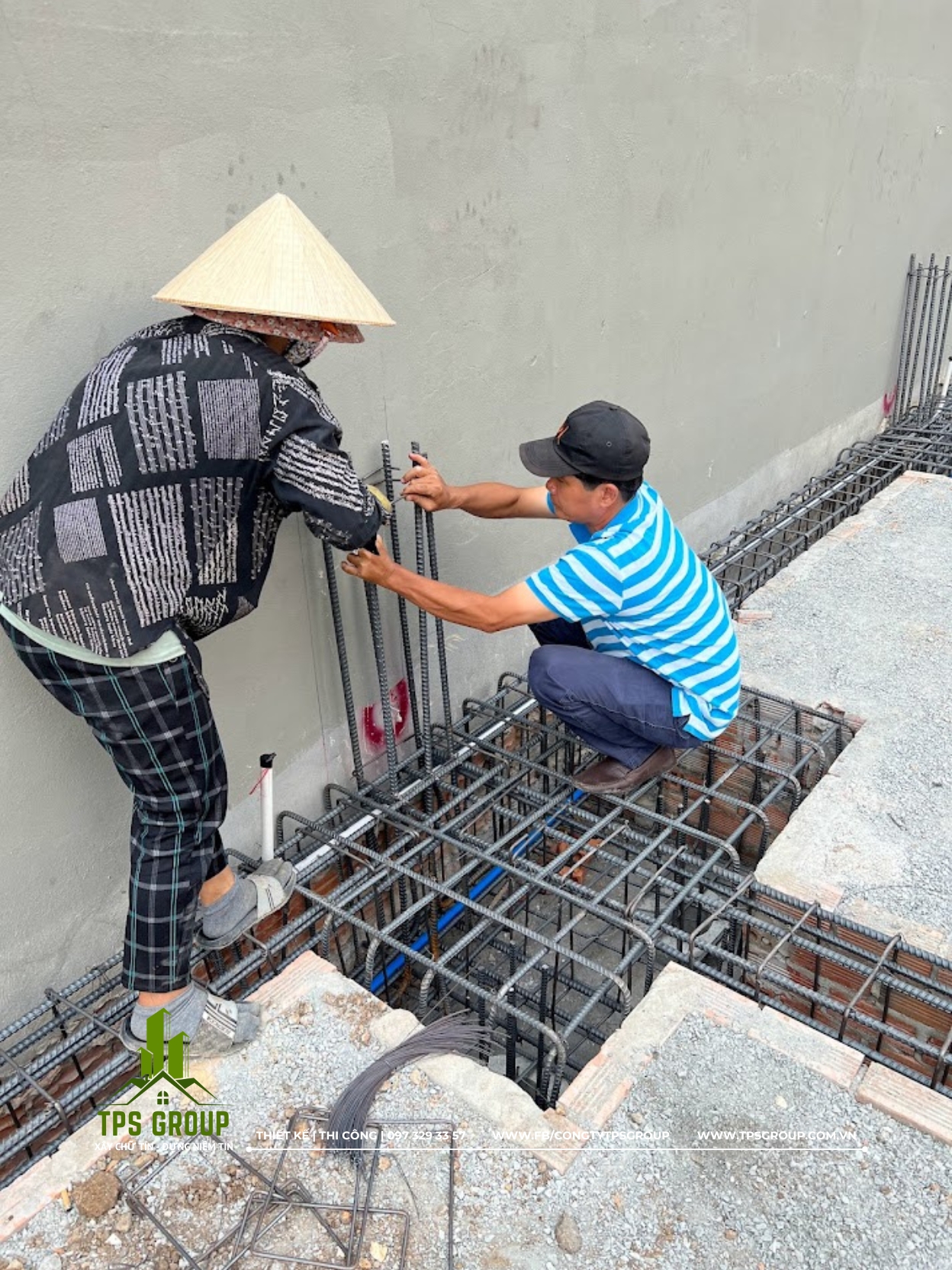 - Lắp đặt và cố định cốt thép theo bản vẽ thiết kế, đúng khoảng cách và cao độ.